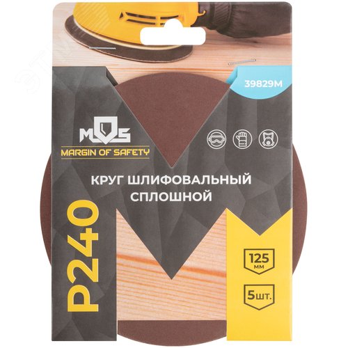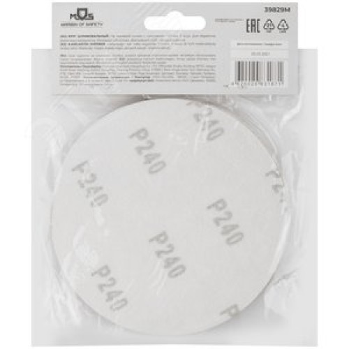 Круги шлифовальные сплошные (липучка), алюминий-оксидные, 125 мм, 5 шт Р 240 гибкая -14А