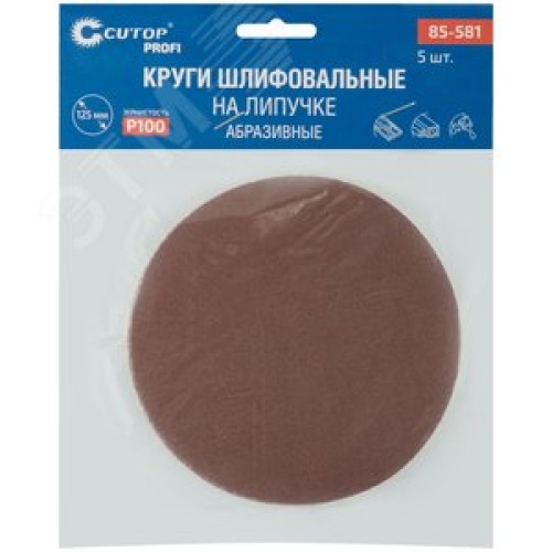 Круги абразивные шлифовальные на ворсовой основе под ''липучку'' (Р100, 125 мм, 5шт), Cutop Profi