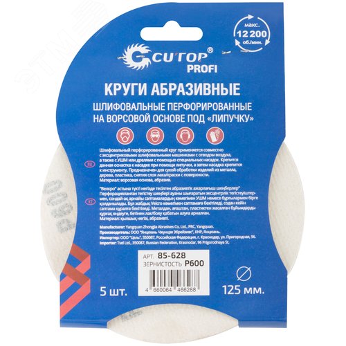 Круги абразивные шлифовальные перфорированные на ворсовой основе под ''липучку'' (Р600, 125 мм, 5шт), Profi