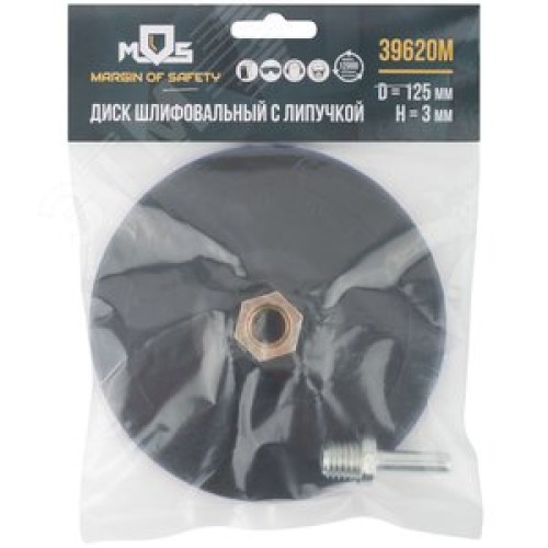 Диск шлифовальный с липучкой, гайка М14 + переходник для дрели, 125х3 мм
