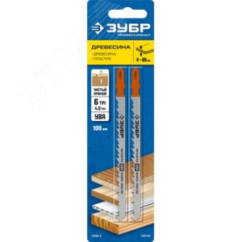 Полотна для эл/лобзика, T301CD, У8А, по дереву, Т-хвостовик, шаг 4мм, 100мм, 2шт.