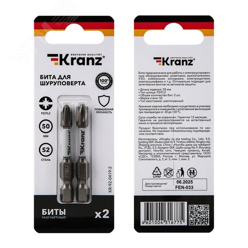 Бита для шуруповерта PZ/FL2х50 мм (2 шт)
