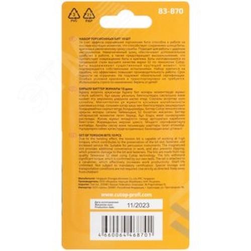 Набор торсионных бит 50мм ''Подвесной'', profi plus, 10 предметов