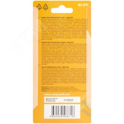 Набор торсионных бит 25мм ''Компактный'',  profi plus, 11 предметов