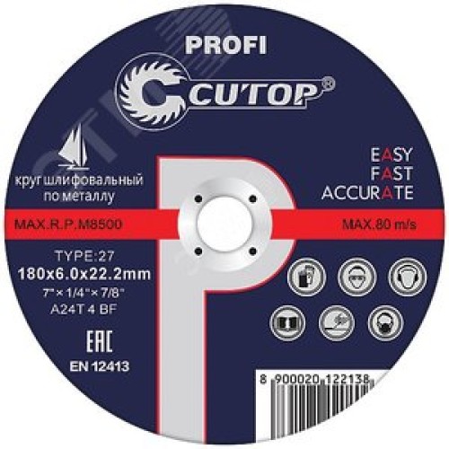 Профессиональный диск шлифовальный по металлу и нержавеющей стали Т27-125x6.0x22.2 мм, Cutop Profi