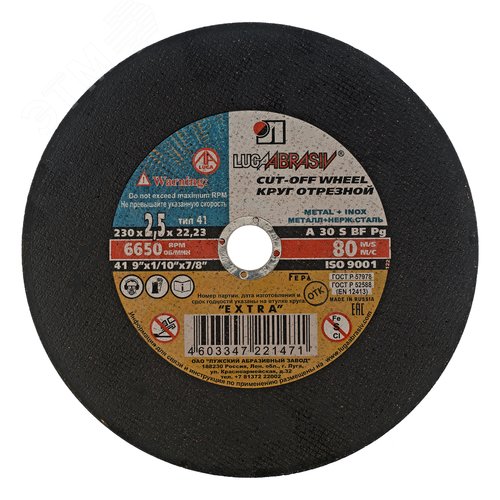 Диск отрезной по металлу, 230 x 2.5 x 22.2 мм, для УШМ