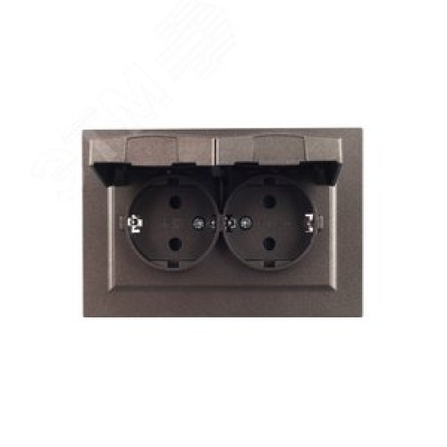 BRITE Розетка 2-местная с заземлением с защитными шторками и крышкой 16А в сборе IP44 РСбш12-3-44-БрТБ темная бронза