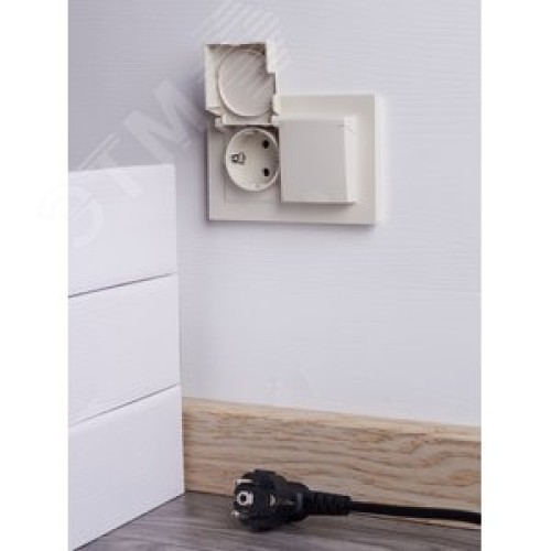 BRITE Розетка двойная с заземлением с защитными шторками и крышкой 16А в сборе IP44 РСбш12-3-44-БрКр бежевый