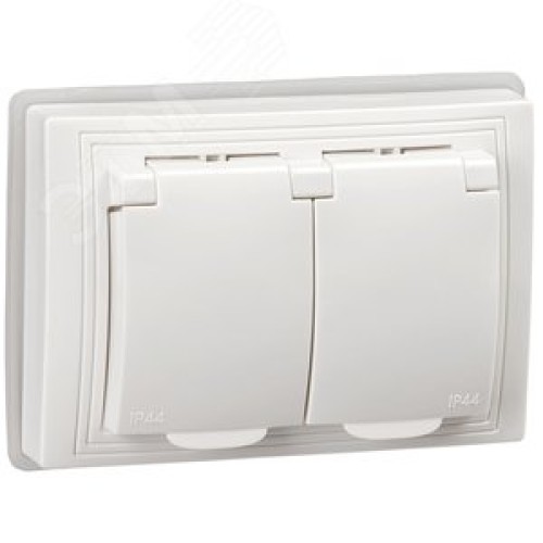 KVARTA Розетка 2-местная с заземлением с защитными шторками с крышкой 16А IP44 РСбш12-3-ККм-44 кремовый GENERICA