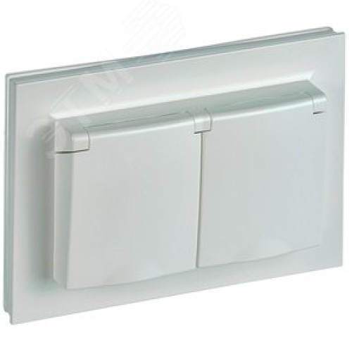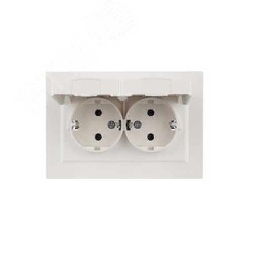 BRITE Розетка двойная с заземлением с защитными шторками и крышкой 16А в сборе IP44 РСбш12-3-44-БрЖ жемчуг