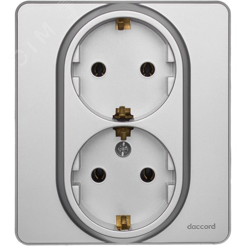 Розетка 2-местная с заземлением без защитных шторок 16А в сборе алюминий INSPIRIA