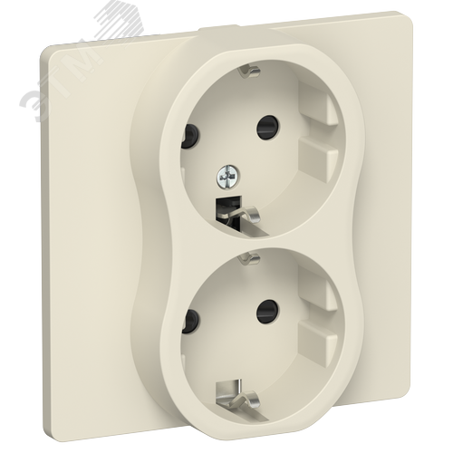 FLITE Розетка 2-местная с заземлением с защитными шторками безвинтовое крепление 16А в сборе РСш12-1-К-ФлСл сливочный IEK