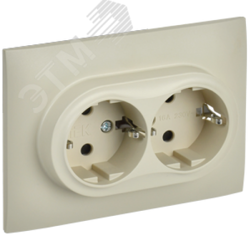 SKANDY Розетка 2-местная с заземлением с защитными шторками 16А в сборе SK-R07B бежевый IEK