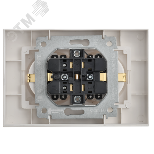 BRITE Розетка 2-местная с заземлением с защитными шторками плоская 16А в сборе РСшПл12-3-БрБ белый
