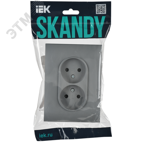 SKANDY Розетка 2-местная без заземления с защитными шторками 10А в сборе SK-R09Gr серый IEK