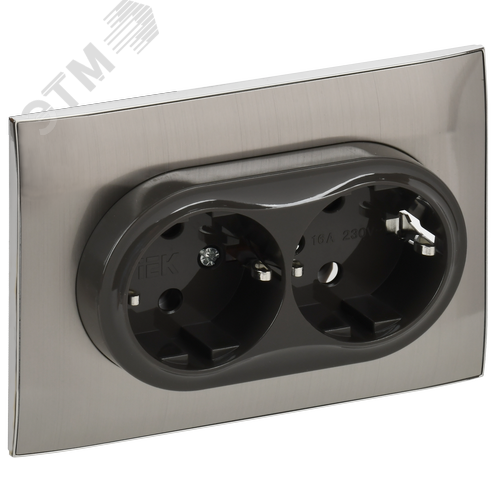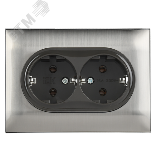 SKANDY Розетка 2-местная с заземлением без защитных шторок 16А в сборе SK-R08N никель IEK