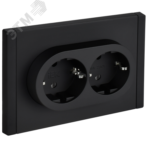 FORTE&PIANO Розетка 2-местная с заземлением без защитных шторок безвинтовое крепление 16А FP124M металл черный IEK