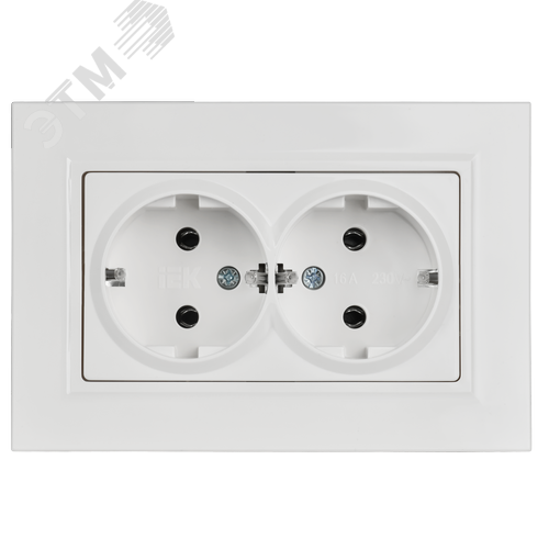 BRITE Розетка 2-местная с заземлением без защитных шторок плоская 16А в сборе РСПл12-3-БрБ белый IEK