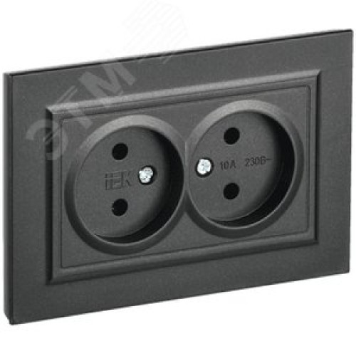 BRITE Розетка 2-местная без заземления без защитных шторок 10А в сборе РС12-2-БрЧ черный IEK