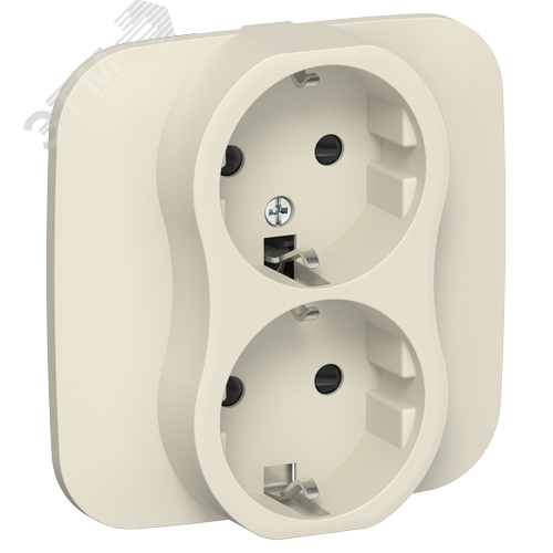 FLITE Розетка 2-местная с заземлением с защитными шторками безвинтовое крепление 16А в сборе РСш12-1-А-ФлСл сливочный IEK
