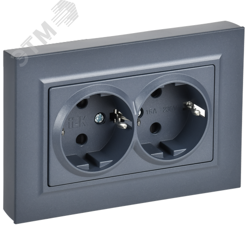 BRITE Розетка 2-местная с заземлением с защитными шторками плоская 16А в сборе РСшПл12-3-БрМ маренго IEK