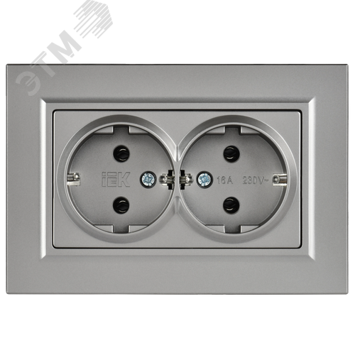 BRITE Розетка 2-местная с заземлением без защитных шторок плоская 16А в сборе РСПл12-3-БрС сталь IEK