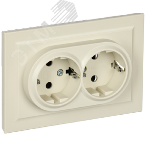 BRITE Розетка двойная с заземлением без защитных шторок 16А в сборе РС12-3-БрКр бежевый