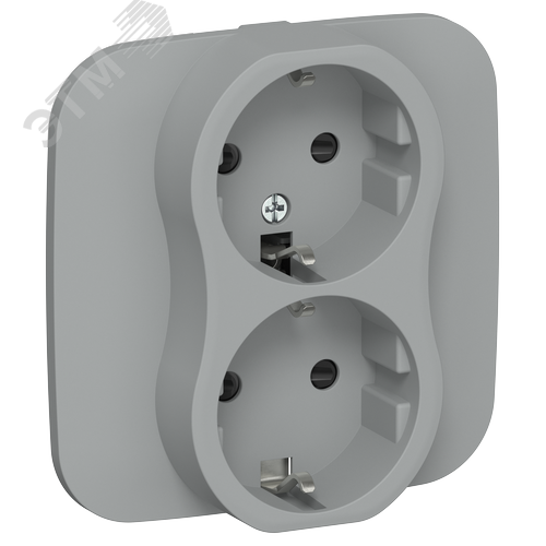 FLITE Розетка 2-местная с заземлением с защитными шторками 16А в сборе РСш12-0-А-ФлС серый IEK