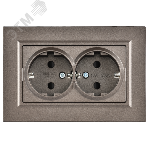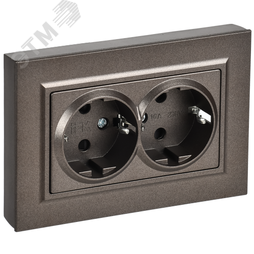 BRITE Розетка 2-местная с заземлением с защитными шторками плоская 16А в сборе РСшПл12-3-БрТБ темная бронза IEK