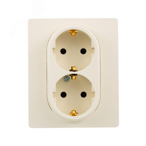 Розетка 2-местная с заземлением без защитных шторок в сборе 16А слоновая кость ETIKA