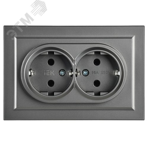 BRITE Розетка двойная с заземлением без защитных шторок 16А в сборе РС12-3-БрС сталь