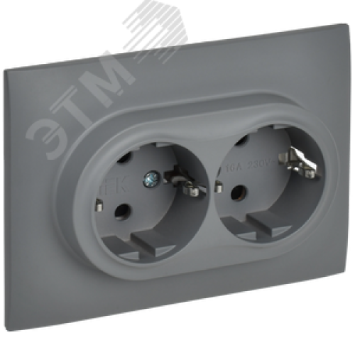 SKANDY Розетка 2-местная с заземлением с защитными шторками 16А в сборе SK-R07Gr серый IEK