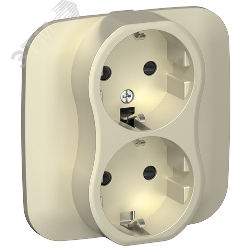FLITE Розетка 2-местная с заземлением с защитными шторками безвинтовое крепление 16А в сборе РСш12-1-А-ФлШ шампань IEK