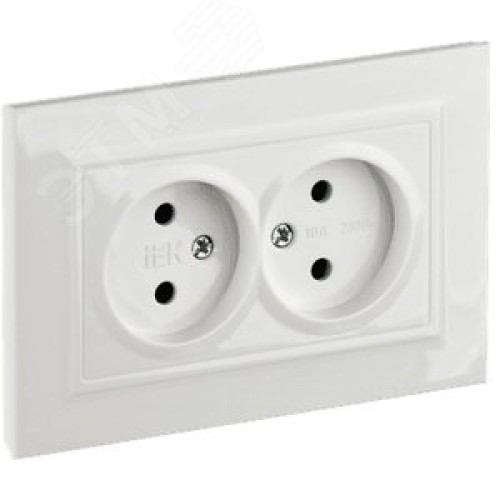 BRITE Розетка 2-местная без заземления с защитными шторками 10А в сборе РСш12-2-БрБ белый IEK