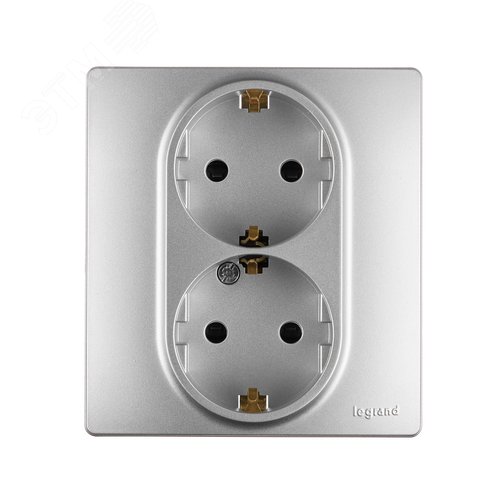 Розетка 2-местная с заземлением с защитными шторками безвинтовое крепление 16А в сборе алюминий ETIKA