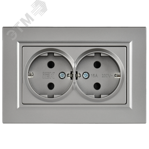 BRITE Розетка 2-местная с заземлением с защитными шторками плоская 16А в сборе РСшПл12-3-БрС сталь IEK