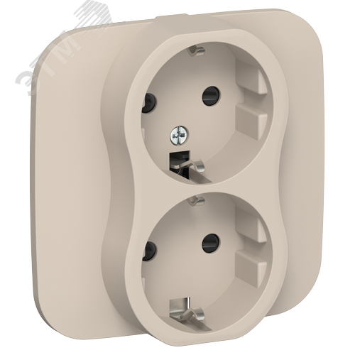 FLITE Розетка 2-местная с заземлением с защитными шторками безвинтовое крепление 16А в сборе РСш12-1-А-ФлЛ льняной IEK