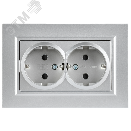 BRITE Розетка 2-местная с заземлением с защитными шторками плоская 16А в сборе РСшПл12-3-БрА алюминий IEK