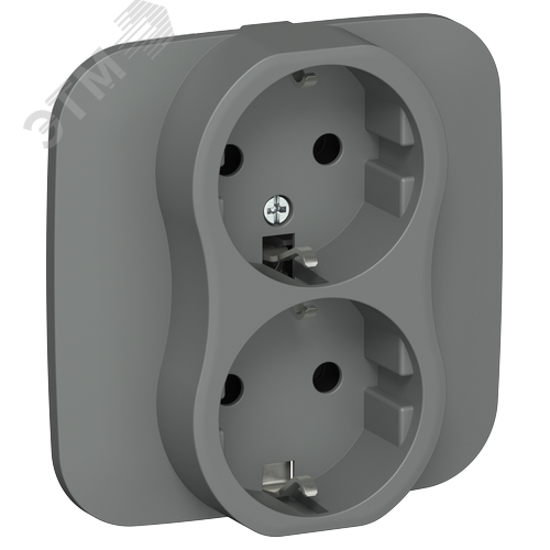 FLITE Розетка 2-местная с заземлением без защитных шторок 16А в сборе РС12-0-А-ФлМА мокрый асфальт IEK
