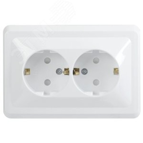 VEGA Розетка 2-местная с заземлением с защитными шторками 16А РСш12-3-ВБ белый GENERICA