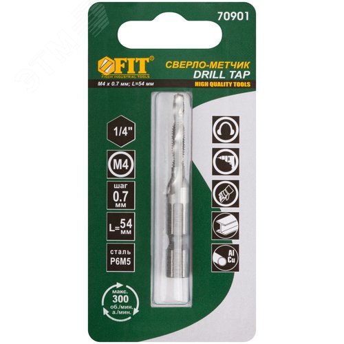 Сверло-Метчик комбинированное метрическое, быстрорежущая (HSS) сталь Р6М5, М4х0.7 мм, 16/54 мм