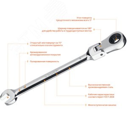 Ключ гаечный комбинированный трещоточный шарнирный 8 мм
