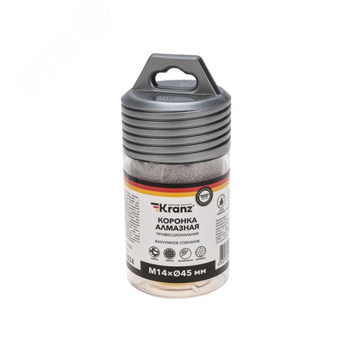 Коронка алмазная профессиональная 45мм по керамограниту и железобетону М14, вакуумное спекание, для УШМ