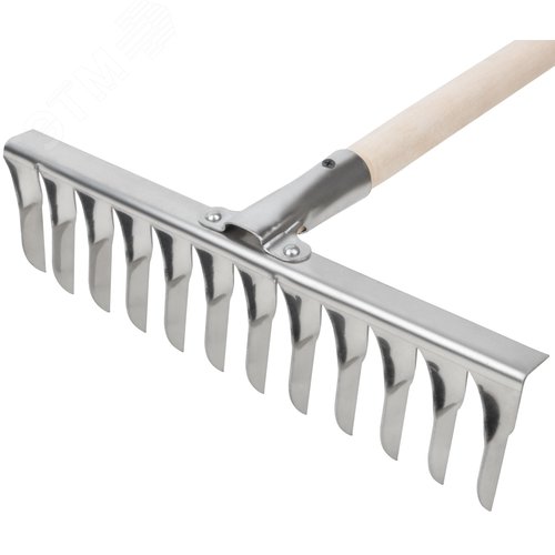 Грабли, витой зуб, нержавеющая сталь, 12 зубьев, с деревянным черенком