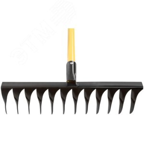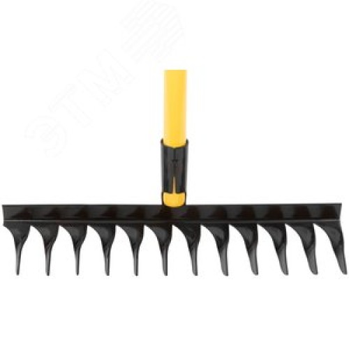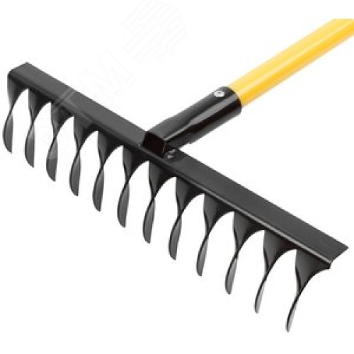 Грабли с желтым метализированным черенком, витой зуб, 12 зубьев