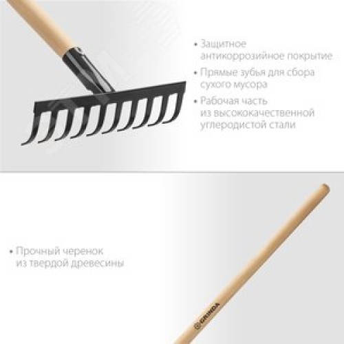 Грабли садовые 260х80х1300 мм, 10 прямых зубьев, с деревянным черенком