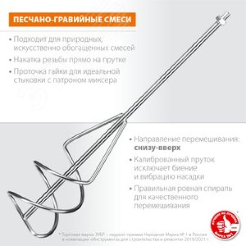 Дополнительно Наиболее эффективно при размешивании ""тяжелых"" растворов (бетона с гравием, гипса, плиточного клея и т.п.)"