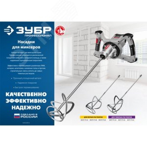 Дополнительно Наиболее эффективно при размешивании ""тяжелых"" растворов (бетона с гравием, гипса, плиточного клея и т.п.)"