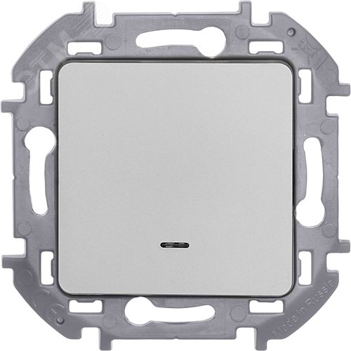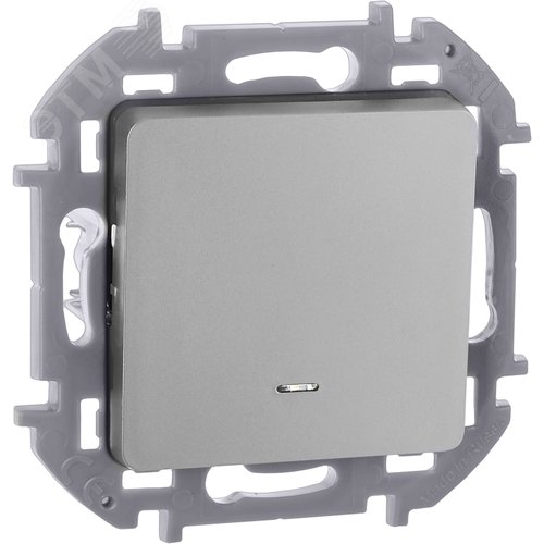 Выключатель 1-клавишный с подсветкой/индикацией 10АХ безвинтовое крепление алюминий INSPIRIA