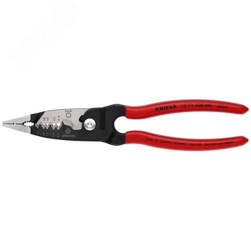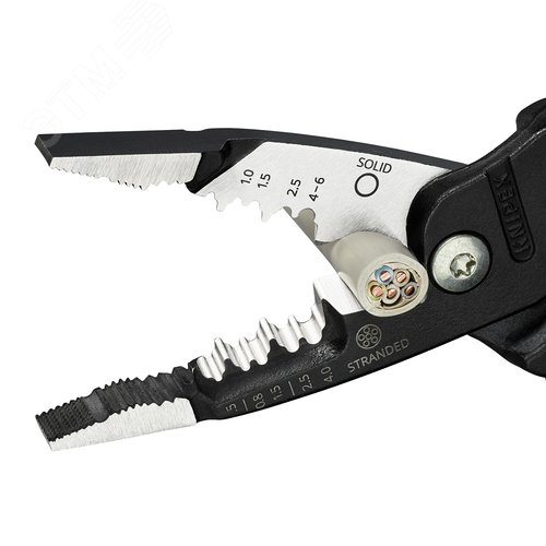 Клещи электромонтажные, 5 в 1, зачистка 0.75 – 4 / 6 мм2, рез d 15 мм / 50 мм2, 200 мм, фосфатированные, обливные ручки